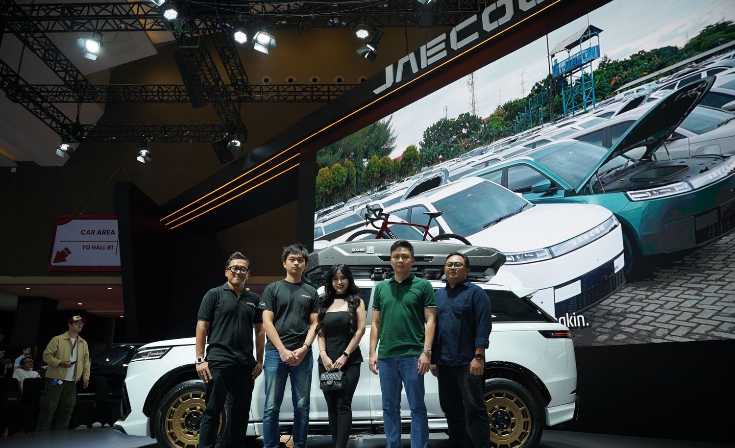 Di area booth, JAECOO juga menampilkan dua contoh modifikasi J5 EV dengan karakter berbeda, mulai dari pendekatan stylish–sporty hingga adventure–outdoor. Opsi yang ditampilkan mencakup eksplorasi body kit, kombinasi velg dan ban, serta sentuhan visual yang menjadi referensi pilihan dalam survei konsumen.