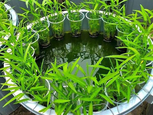 Kangkung, sayuran hijau yang tumbuh baik di air, sangat cocok dikombinasikan dengan budidaya lele karena akarnya menyerap limbah organik dari ikan. Sistem ini dikenal dengan nama budikdamber budidaya ikan dalam ember.