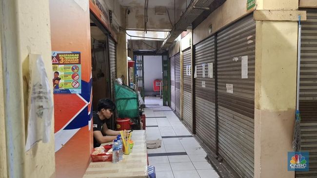 Meskipun area lobi pasar masih terlihat cukup ramai, kondisi berubah drastis saat masuk lebih dalam. Kios-kios yang berderet tampak sebagian besar tutup. Menurut sejumlah pedagang, penurunan jumlah pelanggan telah berlangsung selama dua tahun terakhir dan makin parah sejak awal 2024.