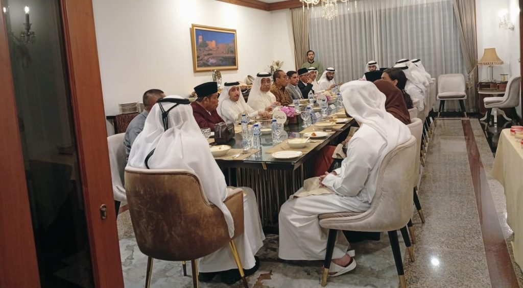 Lebih lanjut kata Dubes UEA, Saya juga menyampaikan penghargaan serta salam hangat kepada Yang Mulia para Duta Besar dan Kepala Perwakilan dari negara-negara anggota GCC dan Yordania, serta para mitra terhormat dari organisasi, institusi, dan komunitas keagamaan di Indonesia.